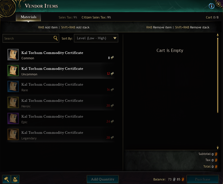 素材は見ての通りでレアリティが存在するので、一番下の証書がアンコモンなら素材はすべてアンコモンである必要がある。