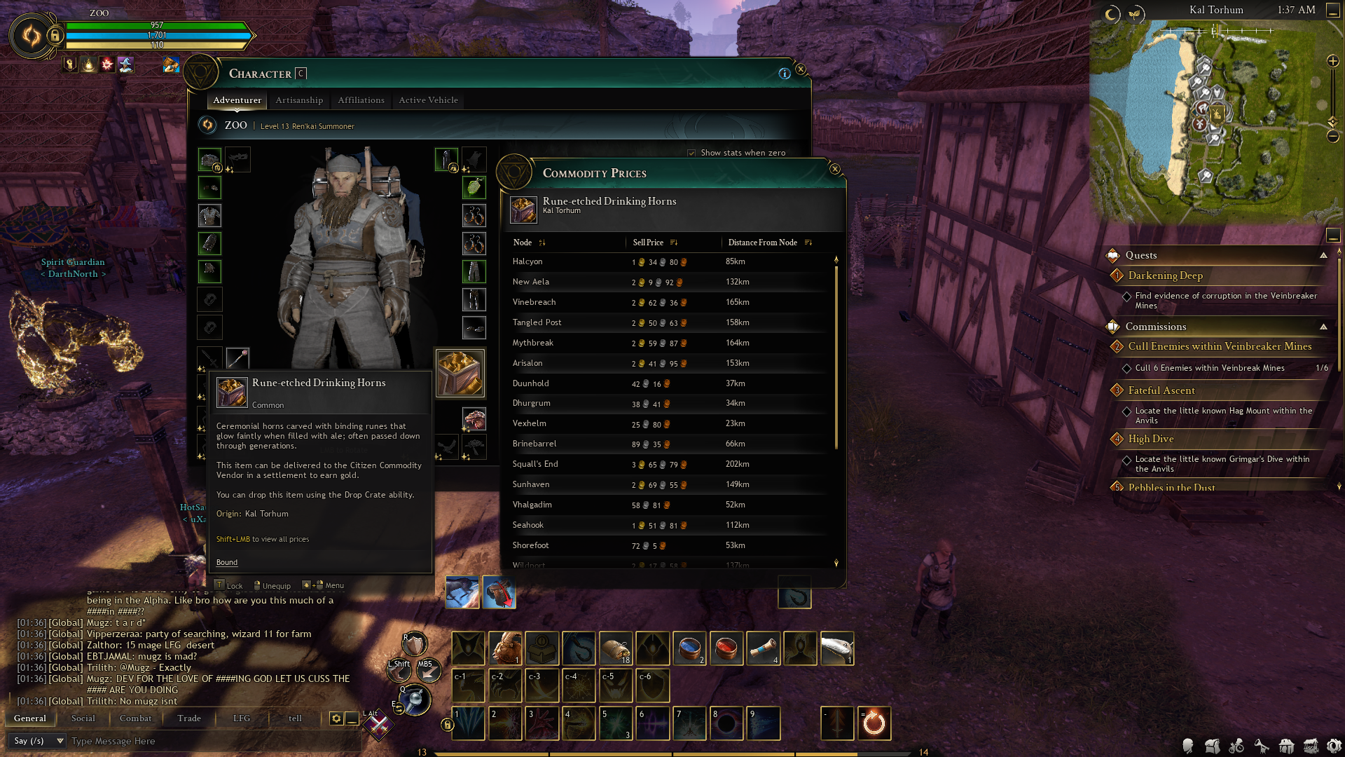 装備メニューを開きでっかい箱アイコンをシフト左クリックすると、各地のノードに届けた場合いくら金が貰えるかが表示される。