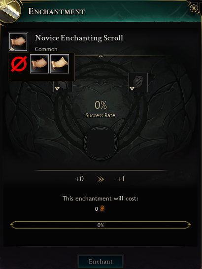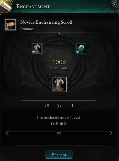 とりあえずエンチャントスクロールを右クリックすると、このウィンドウが表示されます。