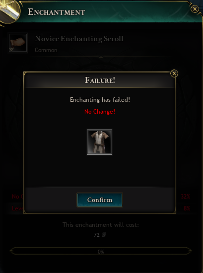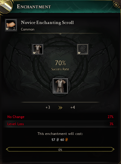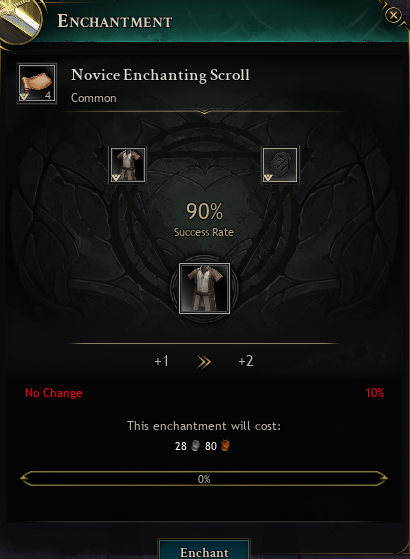 とりあえずノービススクロールだけだと成功確率90%で、変化なしが10%