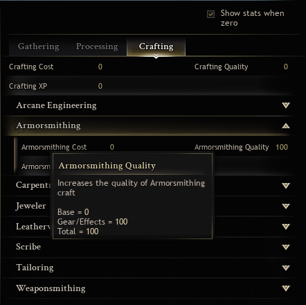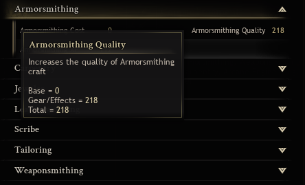 クラフター装備のクオリティ補正(シャツとかズボンとかツールベルト)